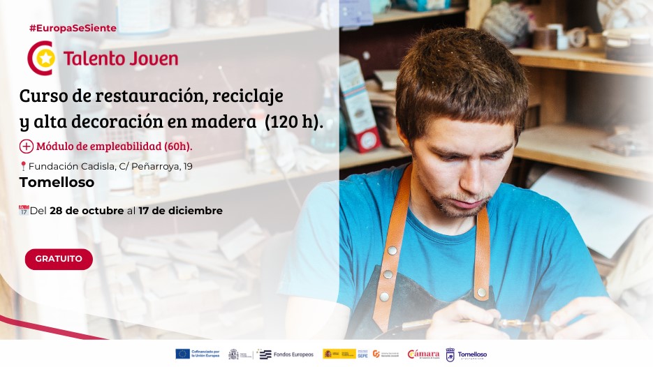 ¿Eres joven y te apasiona el arte, el reciclaje y la creación con madera? El programa Talento Joven te ofrece una oportunidad única para formarte de manera gratuita en un oficio con gran demanda y valor artístico.