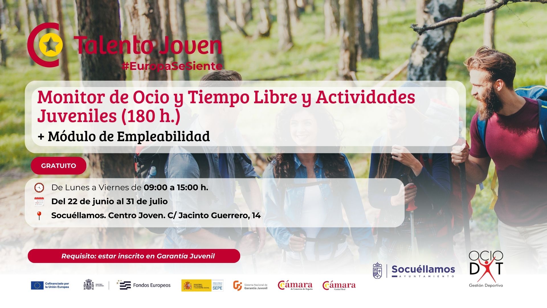 Curso Talento Joven “Monitor de Ocio y Tiempo Libre y Actividades Juveniles (180 h.) + Módulo de Empleabilidad” – Socuéllamos